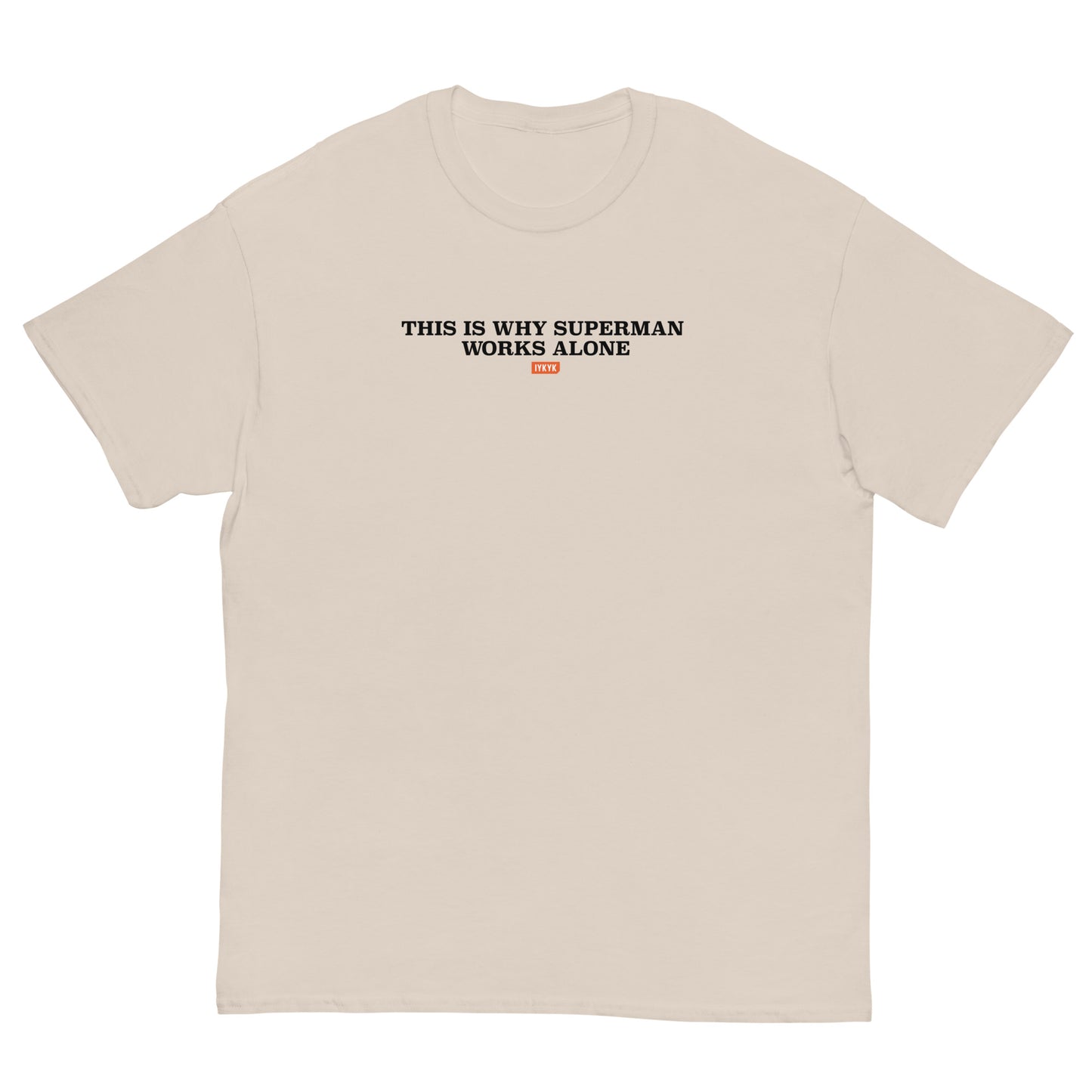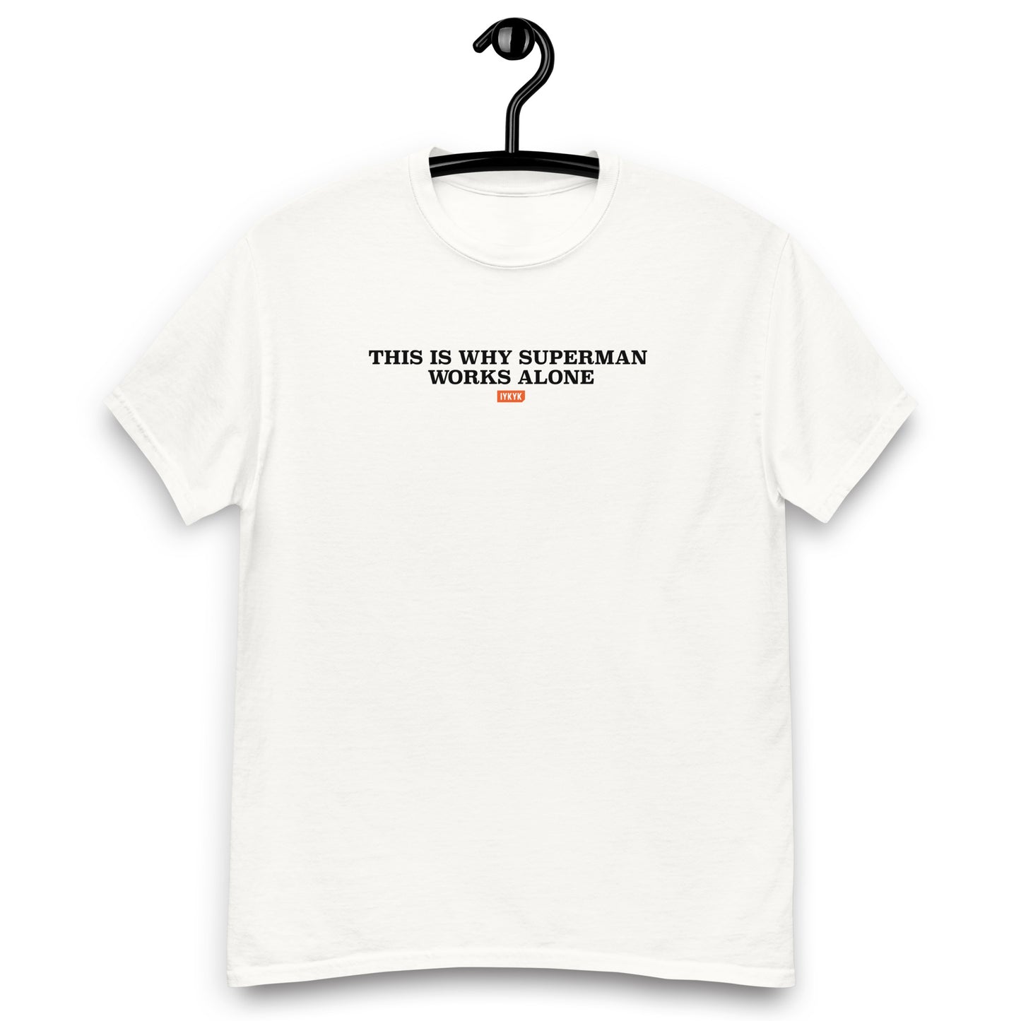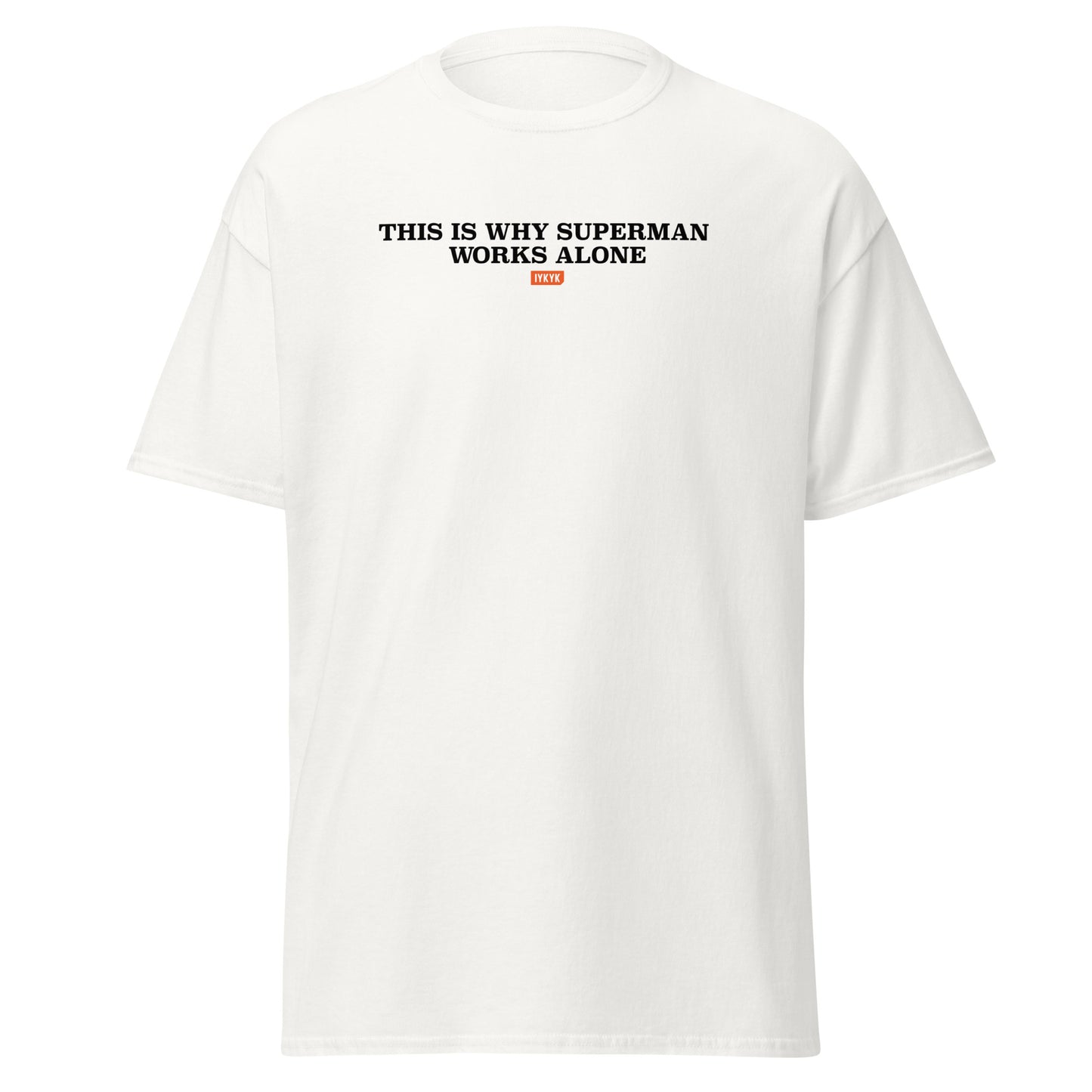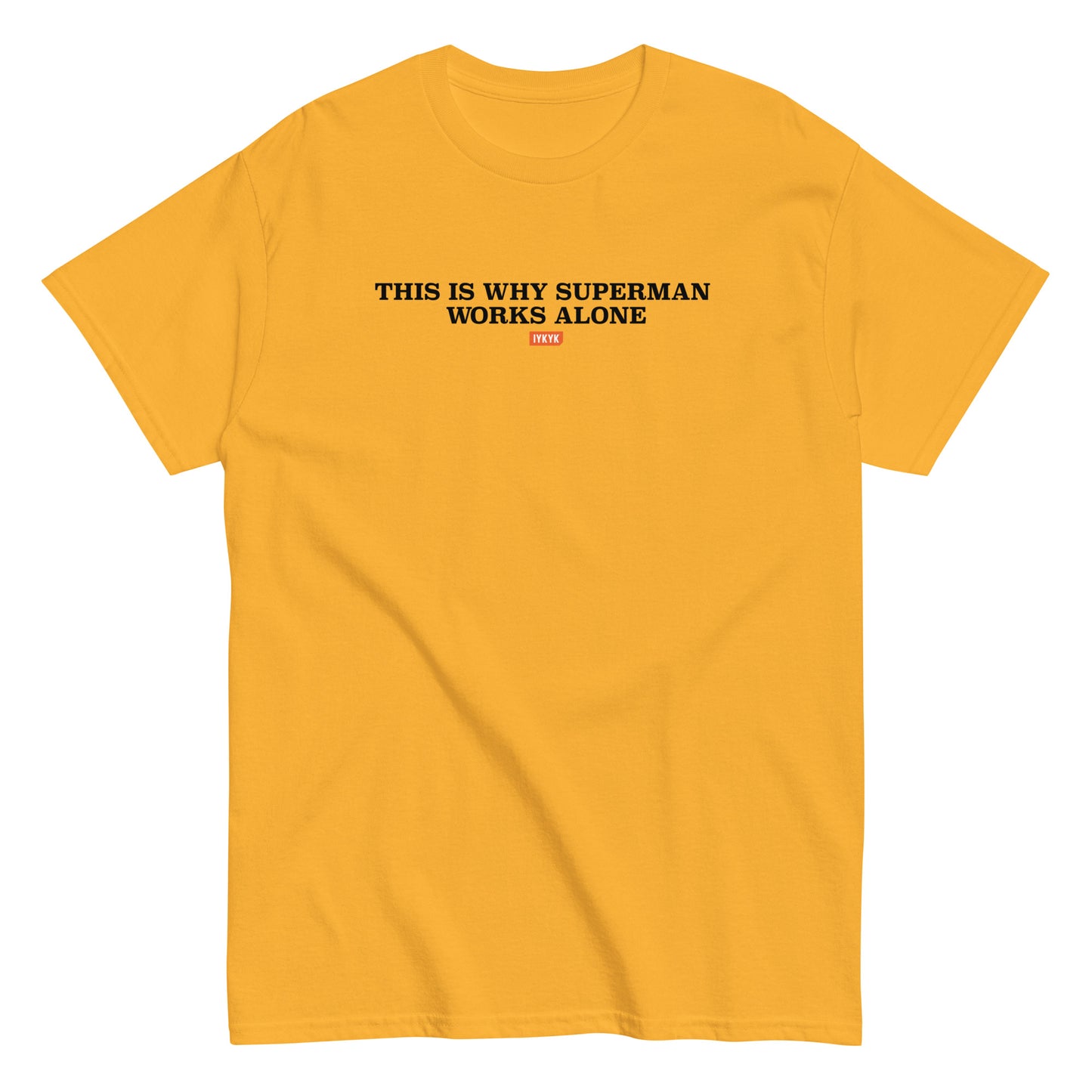 Show your love for Batman and his dark humor with a "This is why Superman works alone" shirt! Whether you're a Batman diehard or a casual fan, this comfy t-shirt is sure to spark a little smile to all that see it - Because If You Know, You Know.
