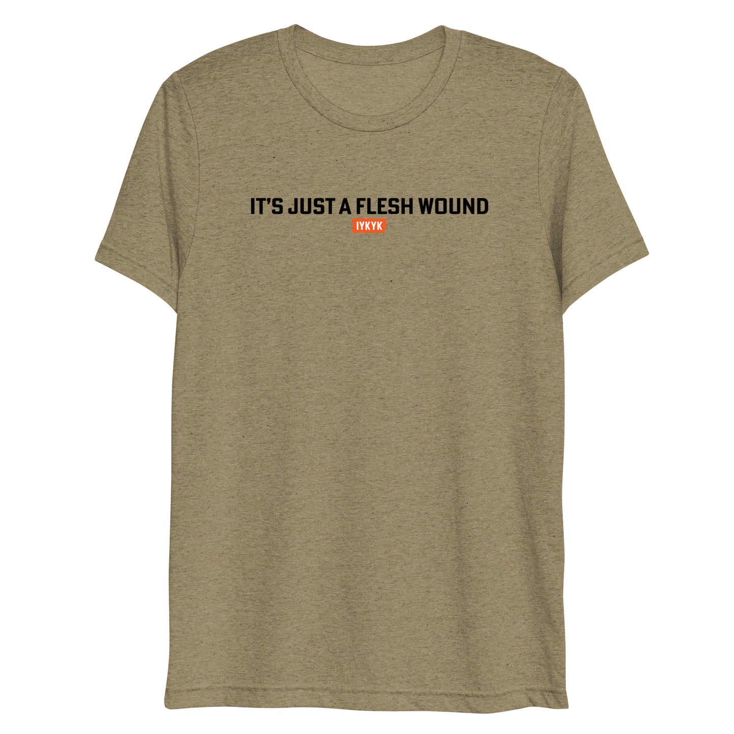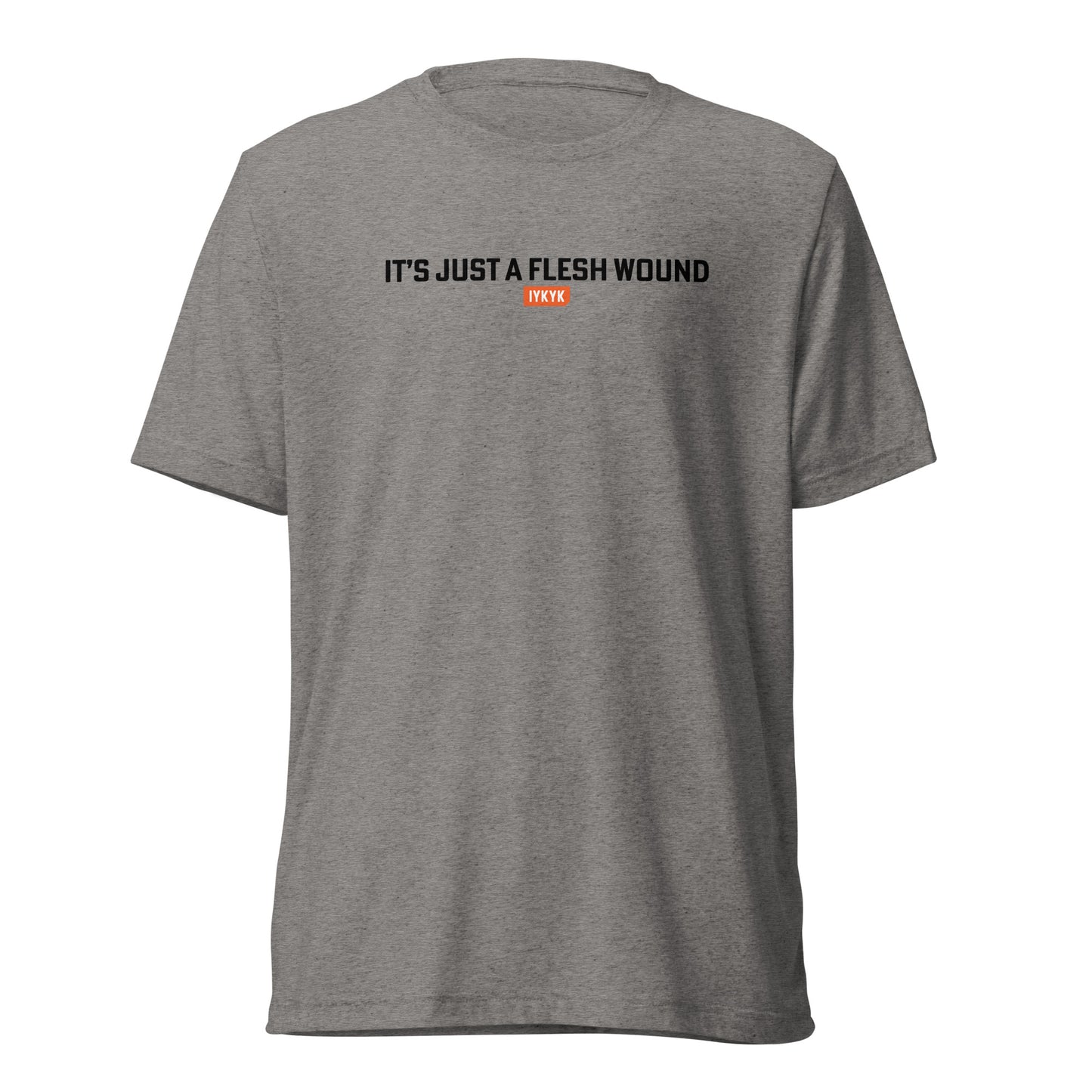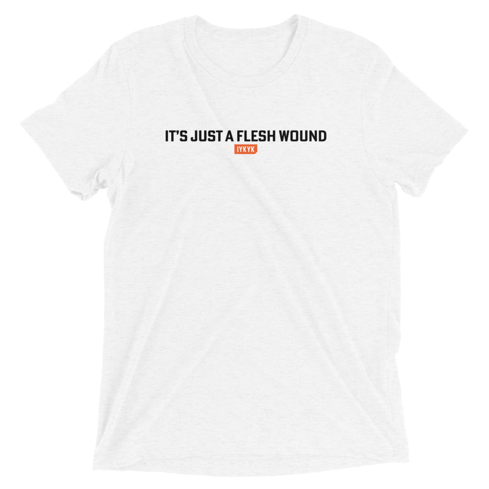 Keep your cool and your sense of humor with an "It's just a flesh wound" shirt from IYKYK! Whether you're a Monty Python diehard or a casual fan, this premium t-shirt is sure to spark a little smile to all that see it - Because If You Know, You Know.