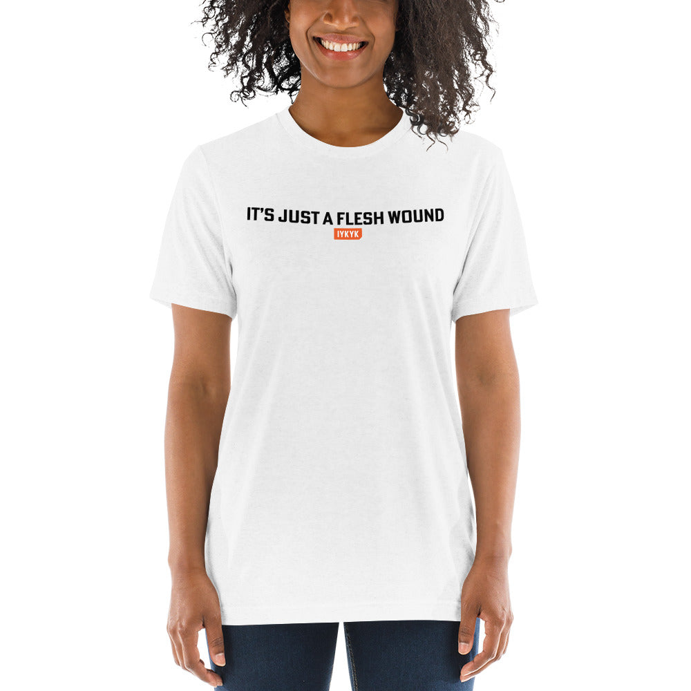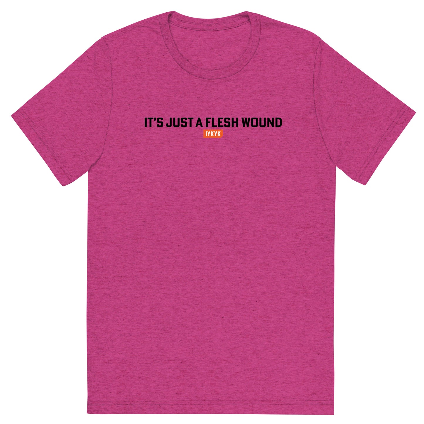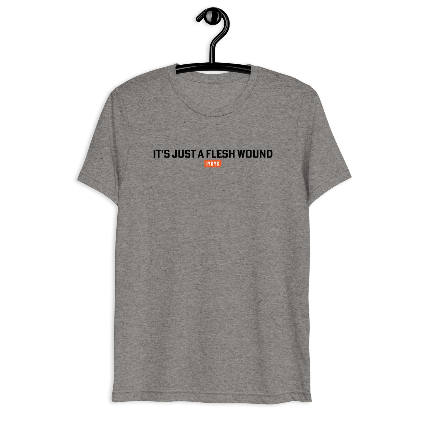 Keep your cool and your sense of humor with an "It's just a flesh wound" shirt from IYKYK! Whether you're a Monty Python diehard or a casual fan, this premium t-shirt is sure to spark a little smile to all that see it - Because If You Know, You Know.