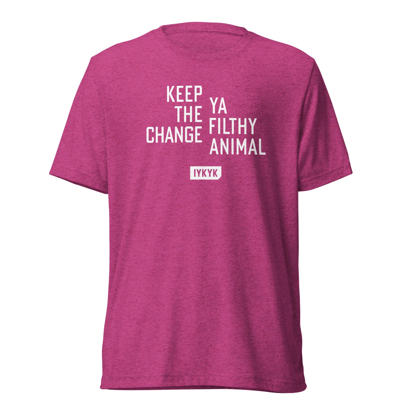 Who didn't want to have a day like Kevin did on Home Alone? Eating junk, jumping on the bed, watching scary movies... Nothing quite captures that spirit like this soft premium Keep The Change Ya Filthy Animal tee from the movie within a movie - from Home Alone. Because If You Know, You Know.